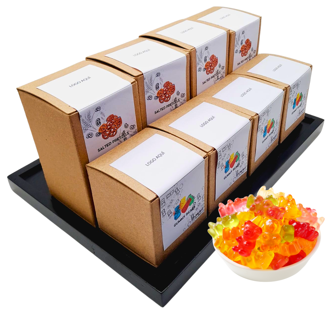 Sorprende a empleados y clientes con una caja de snacks premium, un detalle sofisticado que combina aprecio con estrategia de marca. Nuestros exclusivos snacks en empaques de lujo no solo deleitan paladares exigentes, sino que pueden personalizarse con el logo de tu empresa, convirtiendo cada obsequio en una poderosa herramienta de engagement y fidelización. Ideal para reconocer el esfuerzo de tu equipo, agradecer a clientes valiosos o destacar en eventos corporativos, esta solución refuerza tu imagen mientras crea conexiones memorables. ¡Un regalo gourmet que deja huella!